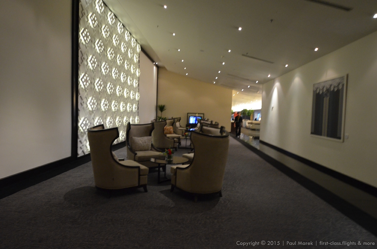 Die Cathay Pacific First and Business Class Lounge in Kuala Lumpur ist eine kombinierte First and Business Class Lounge ohne speziellen First Class Bereich, d. h. es ist eigentlich eine Business Class Lounge, in die selbstverständlich auch First Class Reisende Zutritt haben.