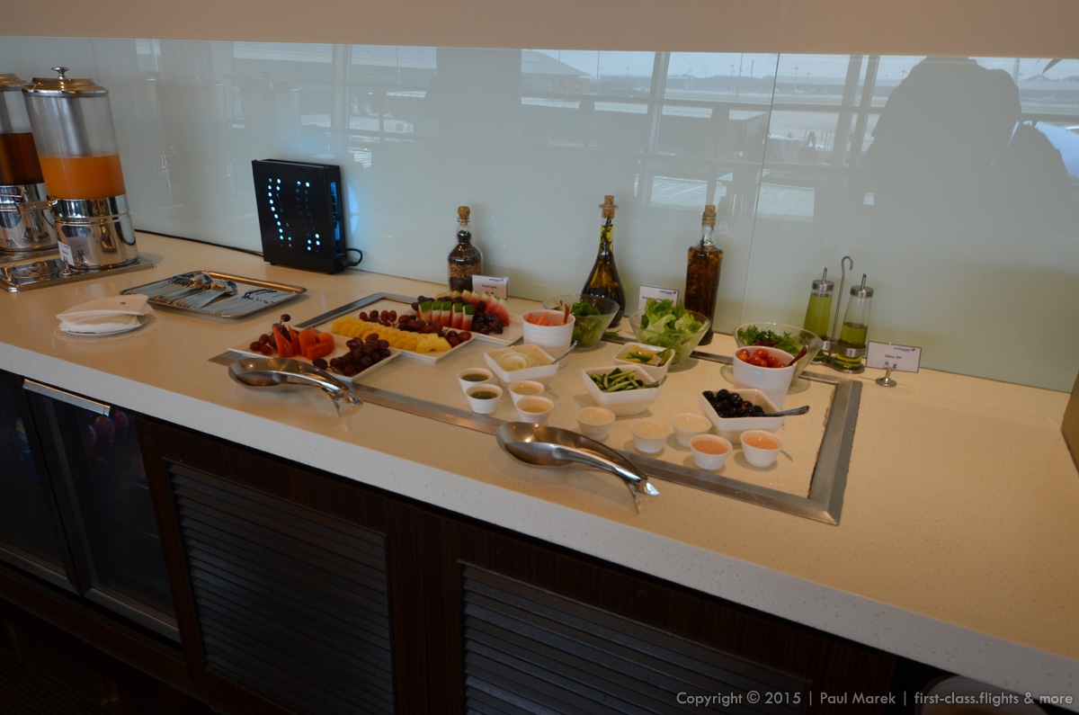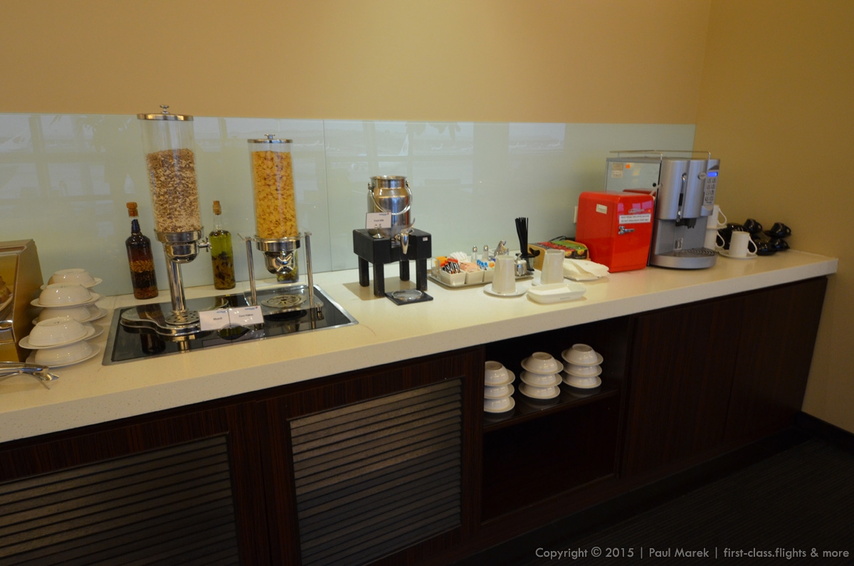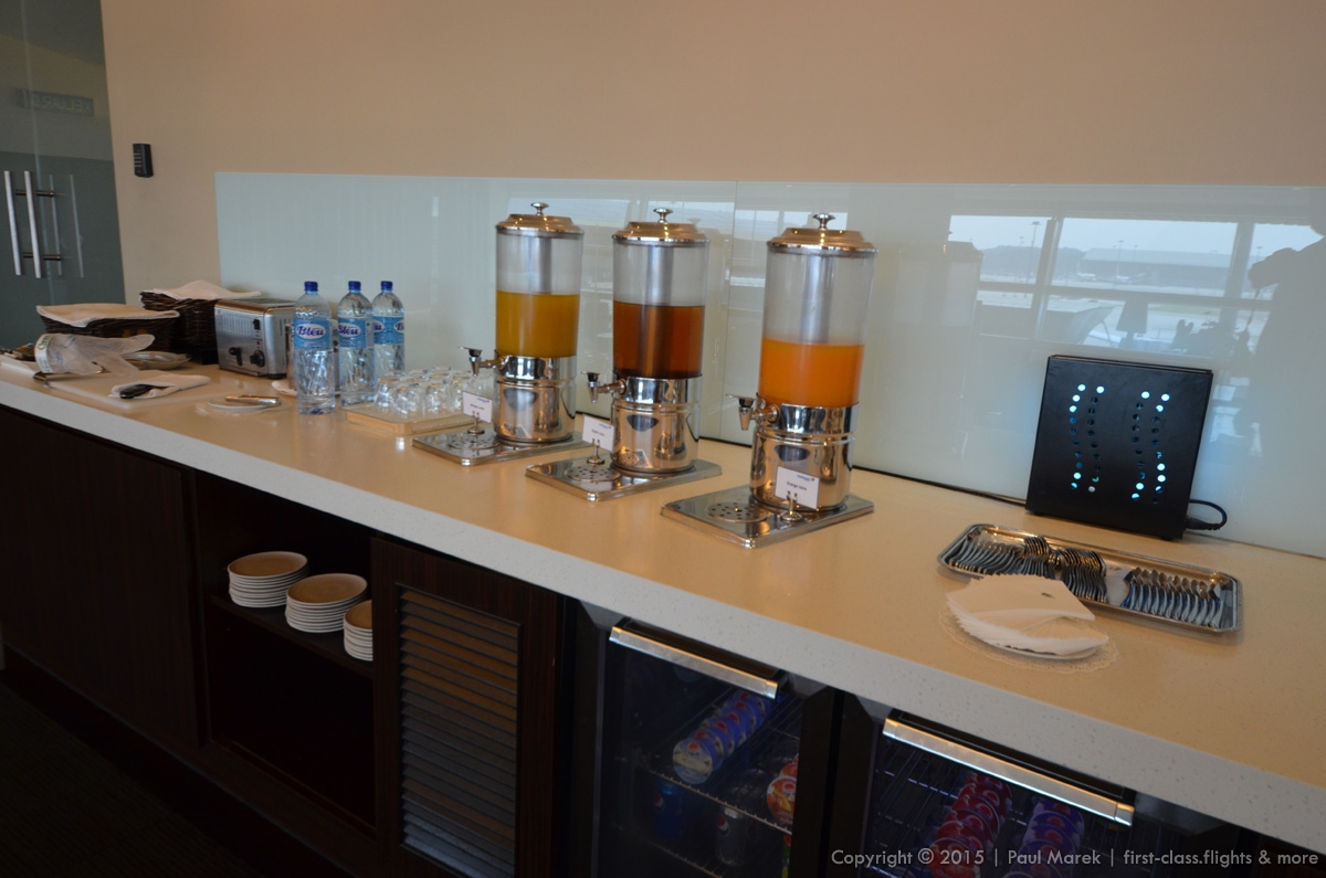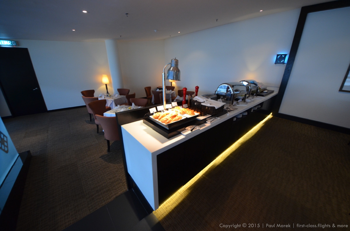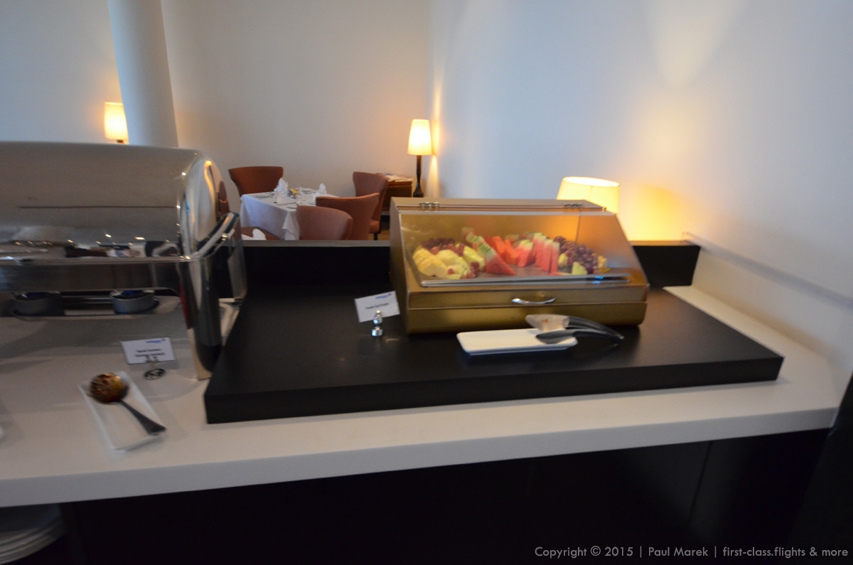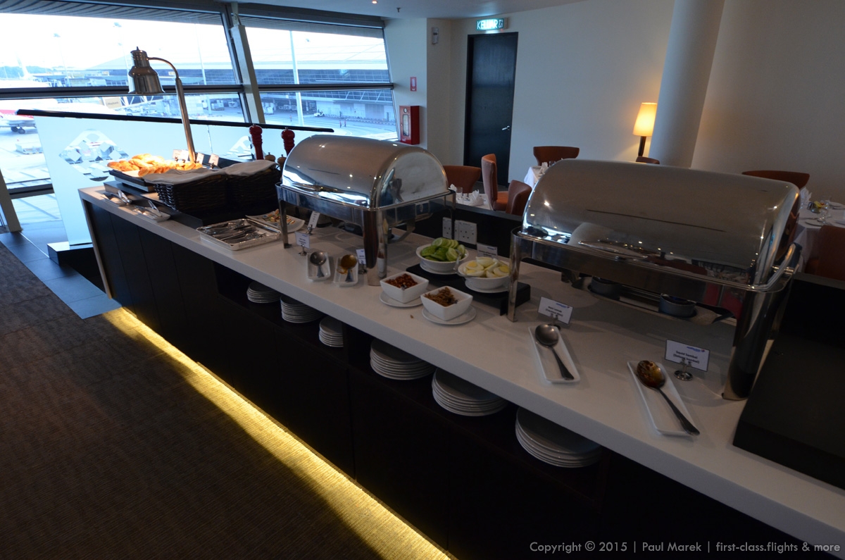 Bequeme Sitzplätze waren in ausreichender Anzahl vorhanden. Das Buffet bietet verschiedene kalte und warme Snacks und natürlich eine Auswahl an alkoholfreien und alkoholischen Getränken.