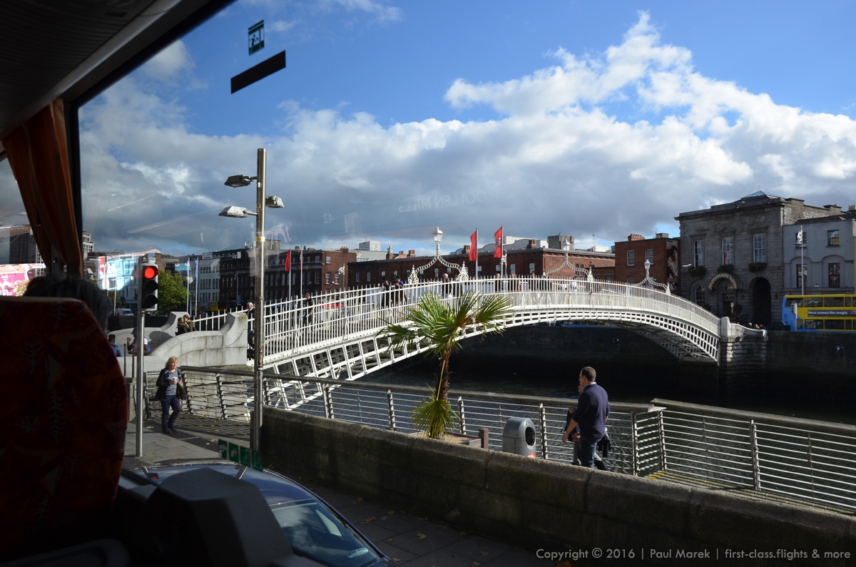 Weiter ging es mit dem ersten Bitburger Premium Pils und einem leckeren kalten Essen. Die Landung in Dublin erfolgte bei strahlendem Sonnenschein und auch die Begrüßung am Flughafen konnte sich sehen lassen. So sollte man nach einem Flug eigentlich immer empfangen werden…