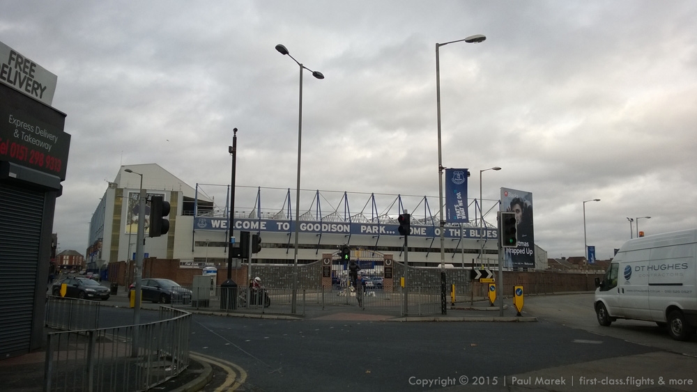 Als Hotel wählte ich das Crowne Plaza Liverpool City Centre. Da ich relativ früh ankam und das Zimmer noch nicht fertig war, ging ich erst einmal zu Fuß zur Anfield Road und dann durch den Stanley Park auch noch zum Goodison Park (Stadion des Everton Football Club) und zurück. Nach dem über 10 km langen Spaziergang war dann auch das Zimmer fertig.