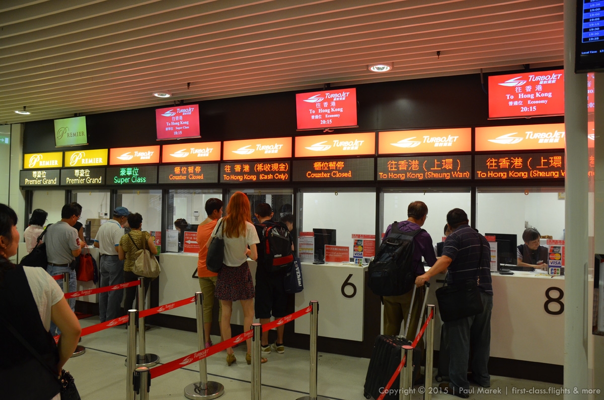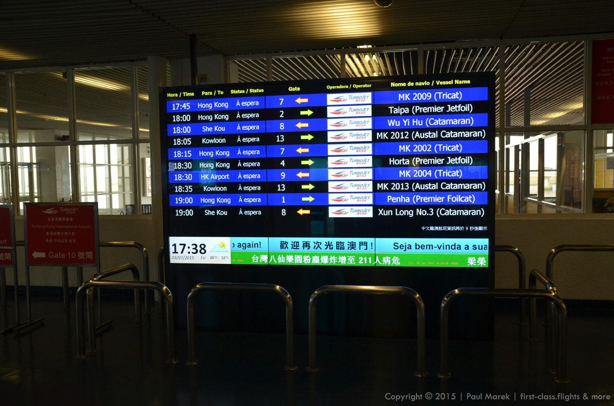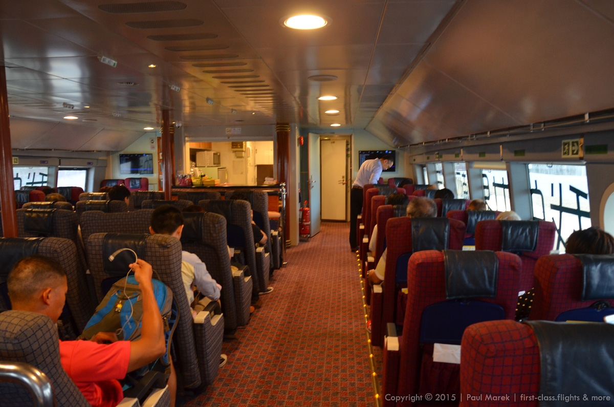 Bei der Hinfahrt hatte ich Glück und bekam vor Ort noch ein Ticket für eine zeitnahe Fahrt in der Economy Class. Bei der Rückfahrt hätte ich über 2,5 Stunden auf einen freien Platz in der Economy Class warten müssen. Daher entschied ich mich für ein Ticket in der Super Class zum Preis von 315 Pataca (ca. 35 €) für eine Fahrt wenige Minuten nach dem Kauf.